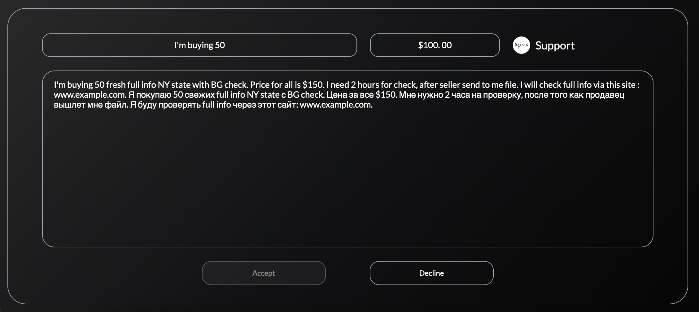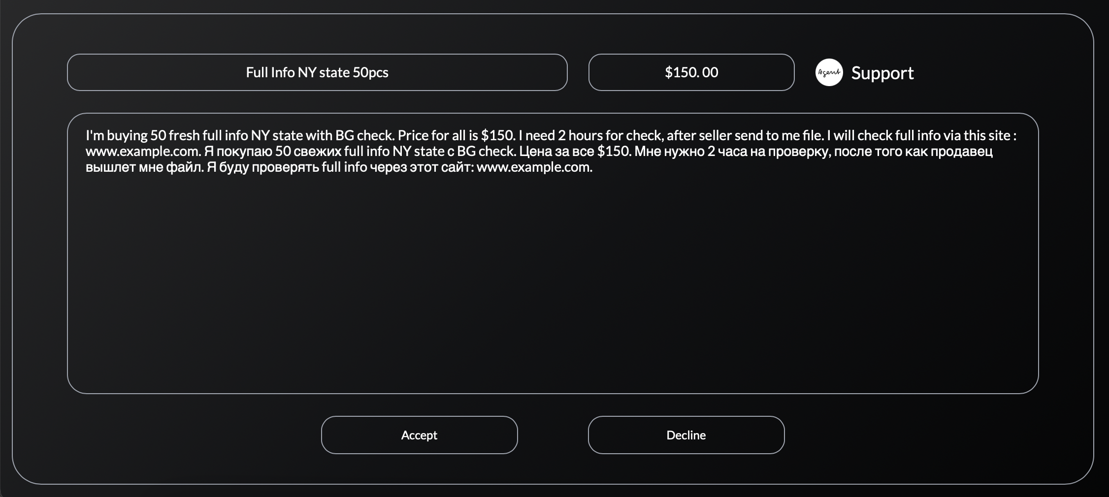 For more safety we advise to send the items through anonymous file-sharing services, such as dropmefiles / Anonfiles / Fileshare etc..