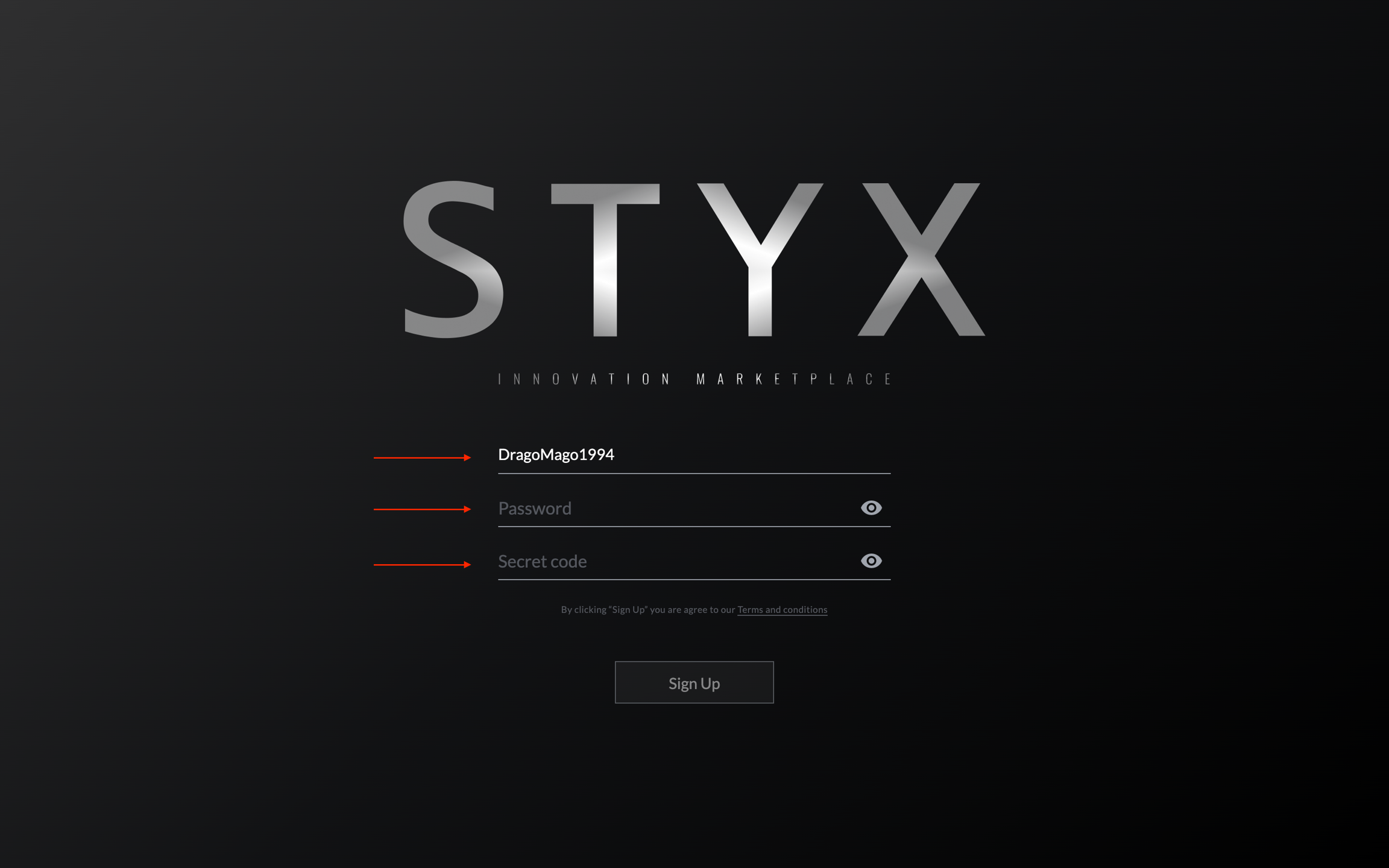 Enter Login, Password and Secret code. Secret code must be created by yourself, it is used to restore the account.